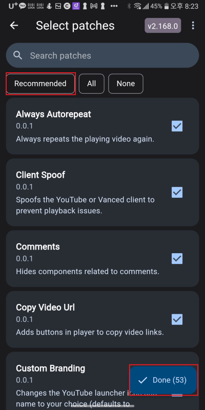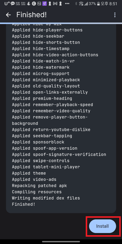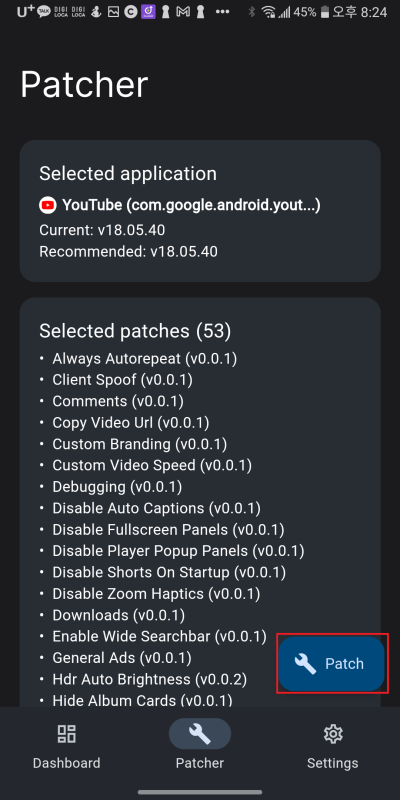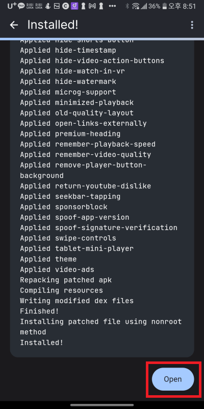 유튜브 리밴스드는 밴스드와 달리 유튜브 앱을 리밴스드 매니저로 개조하면서 직접 패치하는 방식입니다.