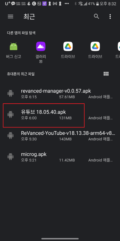 우선 위의 이미지처럼 다운을 받아줍니다. APK 파일 자체에 패치를 한 후 설치하기 때문에 지금 설치하면 안 됩니다.
